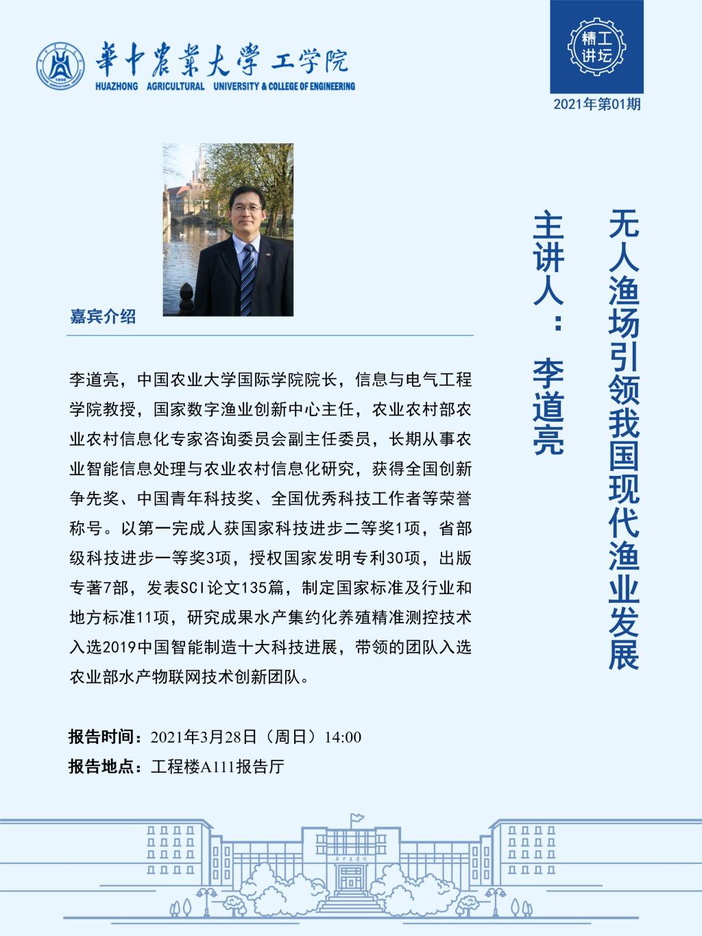 【精工讲坛】2021年第1期:无人渔场引领我国现代渔业发展