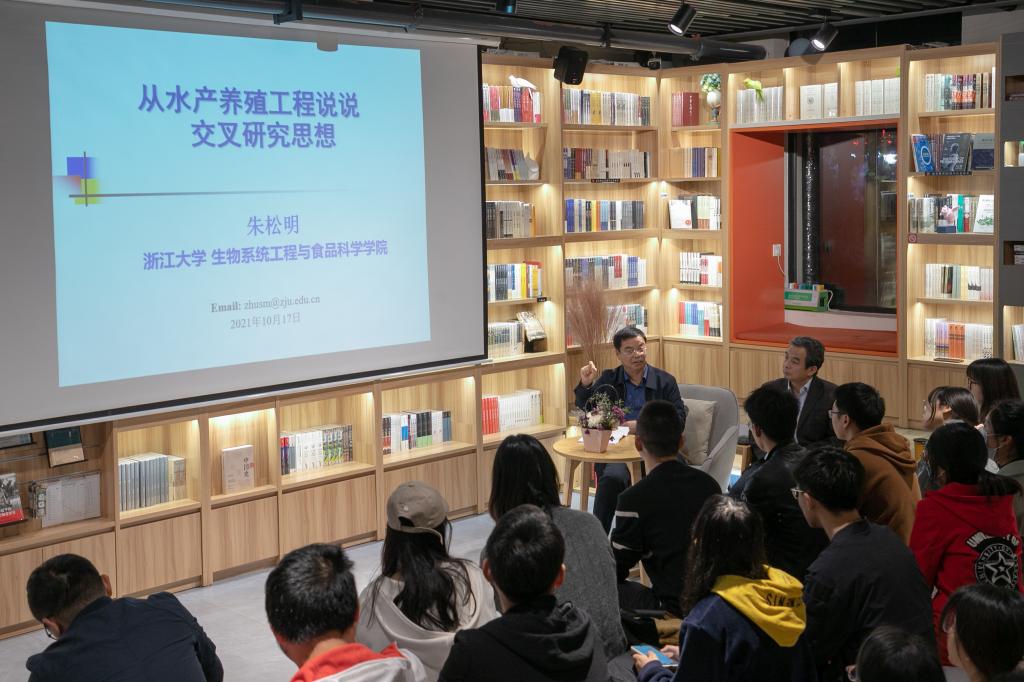 南湖新闻网讯(通讯员 罗银 王贤波 周玉凡)10月16日晚,“从水产养殖工程研究谈学科交叉思想”学术晚茶活动在倍阅书店举行。书香四溢的开放空间里,浙江大学朱松明教授与来自多个学院的50多名同学共同交流“多学科交叉”学术思想。