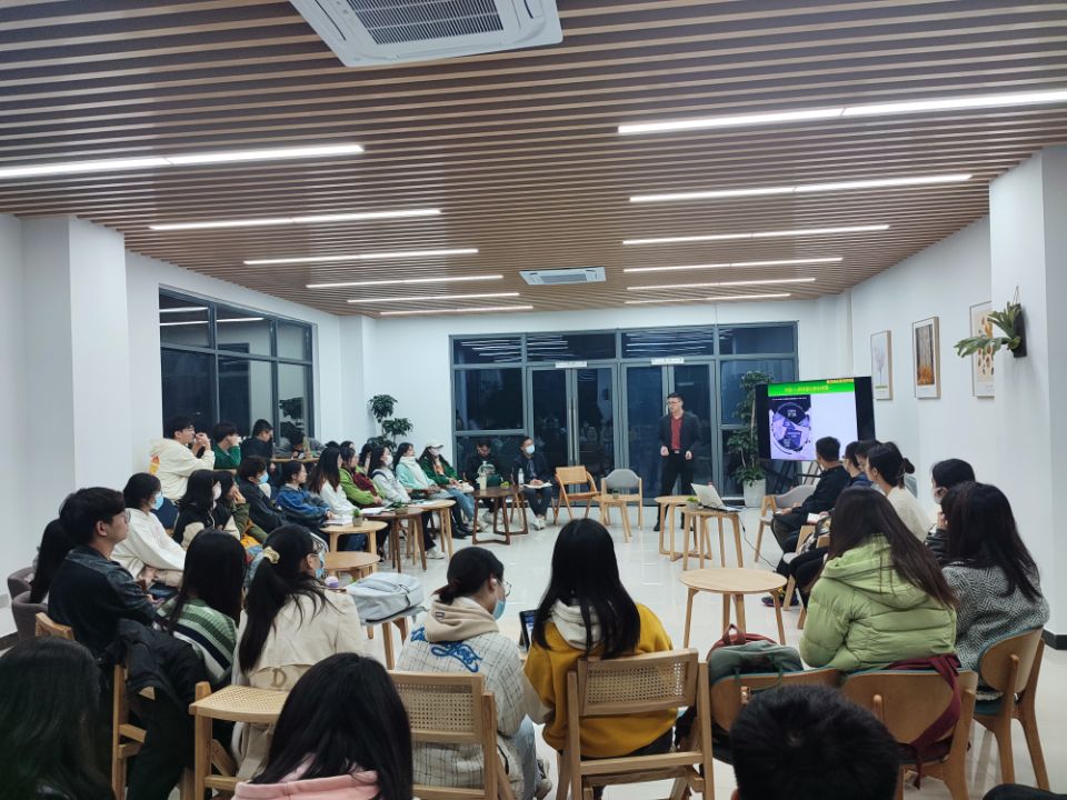 11月18日晚,以“从碳捕集走向绿水青山”为主题的学术晚茶活动在综合楼103举行。太阳成tyc9728集团副教授贺清尧与50多名同学分享交流碳捕集的相关技术,并结合二十大报告中相关内容探讨了碳达峰碳中和的重要意义。