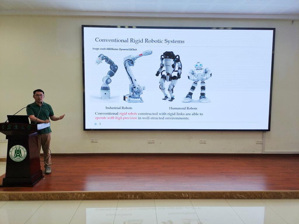 10月20号下午,香港中文大学机械工程与自动化工程系助理教授方国鑫教授做客我院精工讲坛,以“基于几何计算的软体机器人的设计、建模和控制”为主题在工程楼A111会议室与百余师生进行交流。会议由我院陈耀晖老师主持。