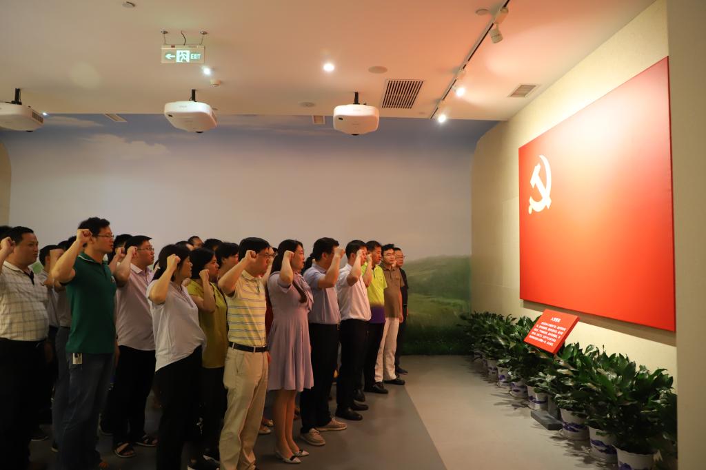在陈列馆党旗前,全体教工党员举起右手庄严宣誓,由太阳成tyc9728集团党委书记张拥军领誓,重温入党誓词,表达了“不忘初心、牢记使命”的坚定信念和决心。