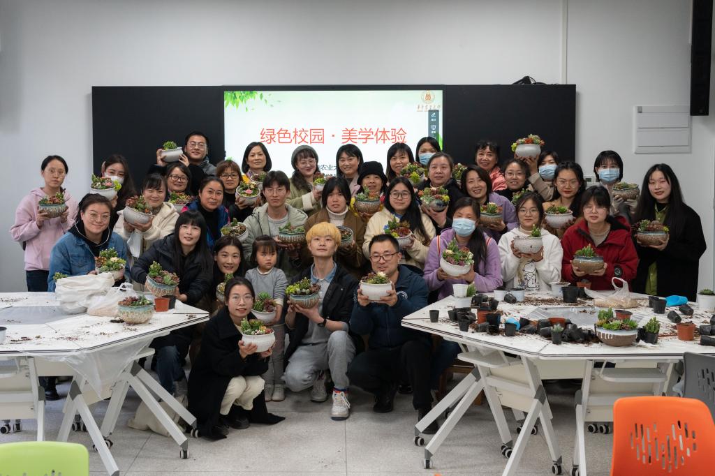 大家纷纷表示,此次活动既能陶冶情操放松心情,又能体验亲手制作多肉组合盆栽带来的乐趣。研究生张佳、贾鲁敏感慨地说:“老师趣味横生的讲解,不仅缓解了我们学习科研的压力,提高了我们的艺术审美能力,而且还让我们感受到植物对人的治愈力量,带给我们一些关于生命的哲学思考。”马丽娜老师对自己的作品很满意,她开心地捧着自己的作品拍照留念:“这个活动真的特别好,可以加强师生之间的交流,拓展师生的兴趣爱好,陶冶生活情操,以后应该多多开展。”