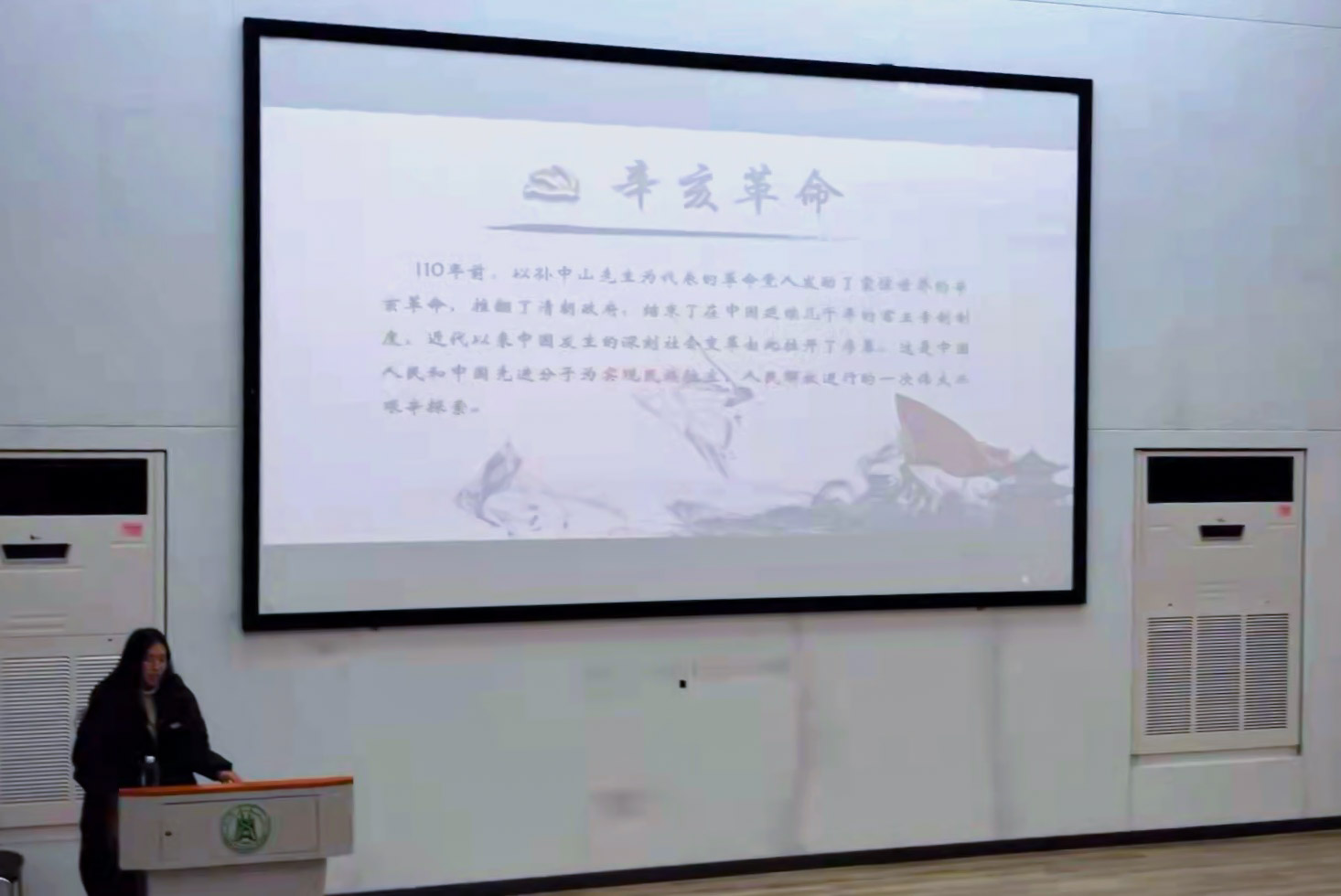 接着,她向同学们强调了辛亥革命给同学们的历史启示,指出“实现中华民族伟大复兴,不仅需要安定团结的国内环境,而且需要和平稳定的国际环境”,并播放了相关视频,获得同学们的热烈的掌声。