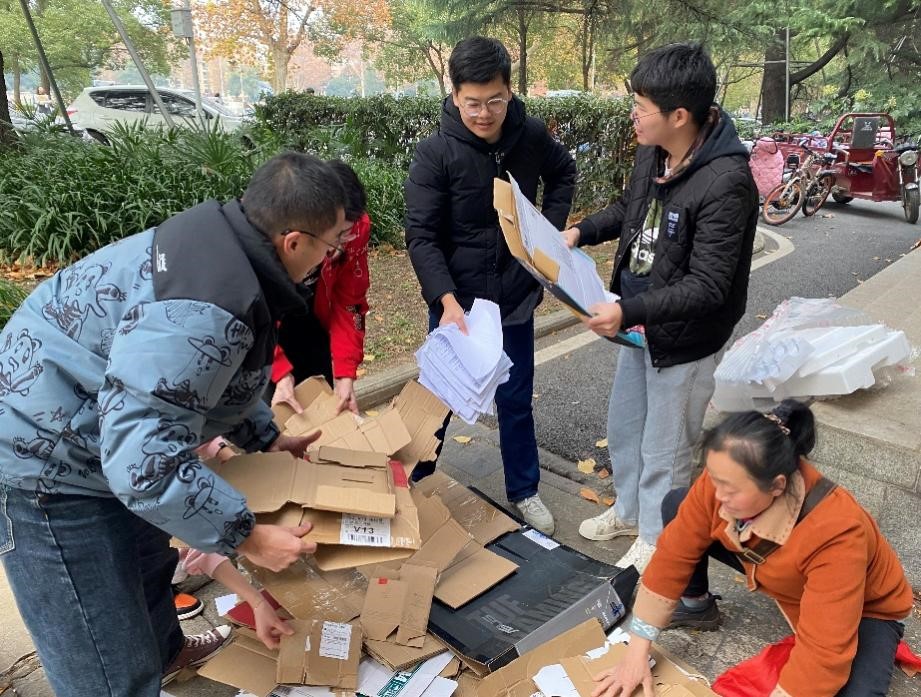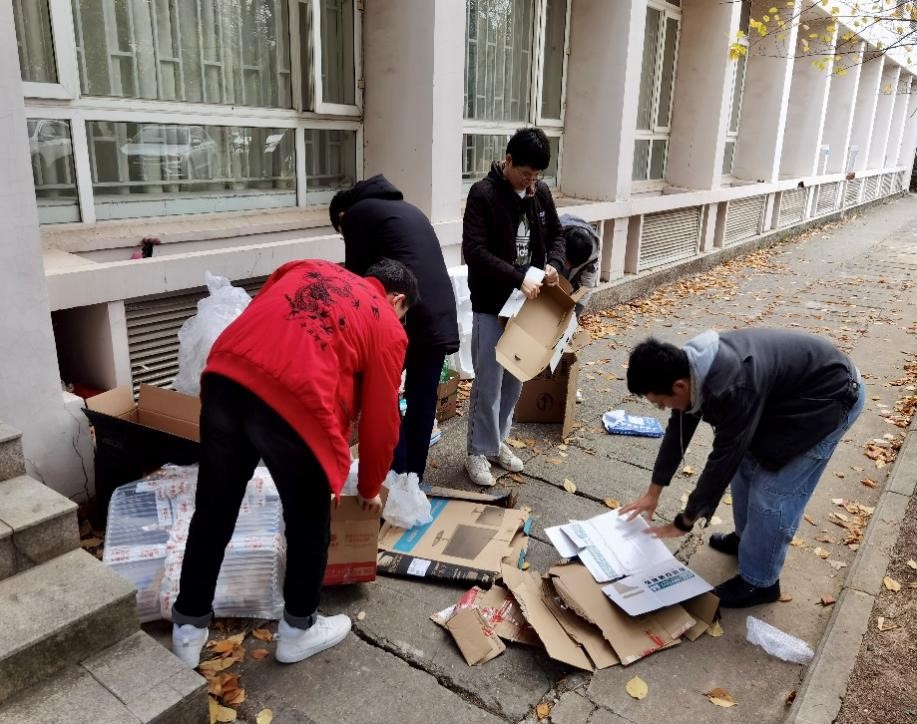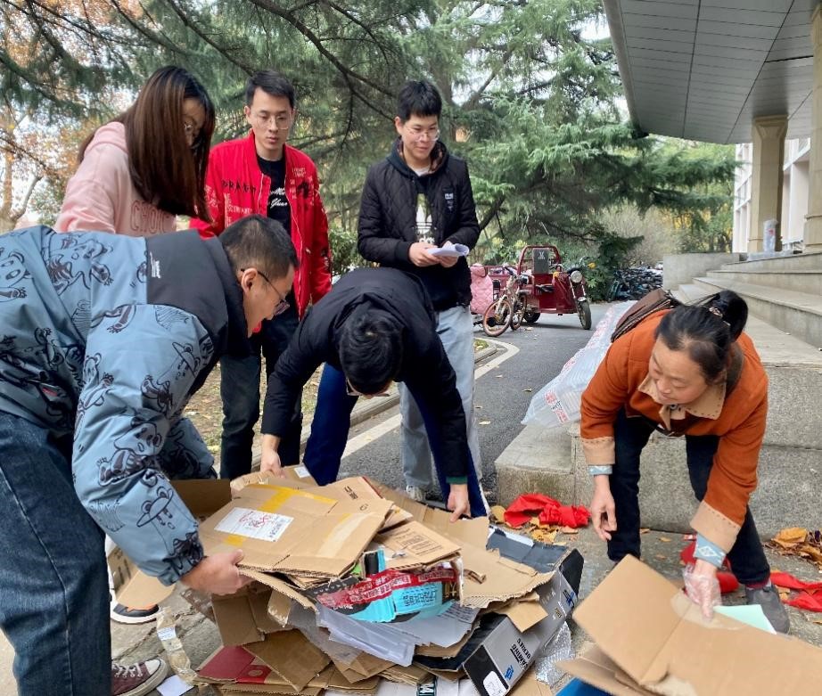11月29日下午,太阳成tyc9728集团组织研究生在新工科大楼和工程楼开展“我为师生办实事”杂物分类清理活动。活动分为杂物整理和集中回收两个环节,院研究生会先组织动员各研究生工作室的同学相互协作、积极配合,将工作室内的废弃杂物进行清理,同时排查安全隐患,随后院党建办组织各研究生党支部成员将各楼层杂物清理到指定地点,并分类回收。