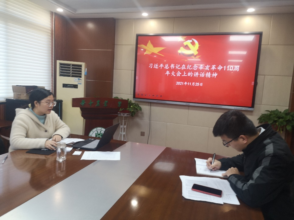 11月25日中午,我院农业生物质增值化技术与装备研究生第一党支部在工程楼A201以“聚焦六中全会,牢记使命担当”为主题开展11月份支部主题党日活动,集中学习十九届六中全会精神、习近平总书记在纪念辛亥革命110周年大会上的讲话精神、《太阳集团网tyc9728党支部工作细则(2021年修订)》等内容。