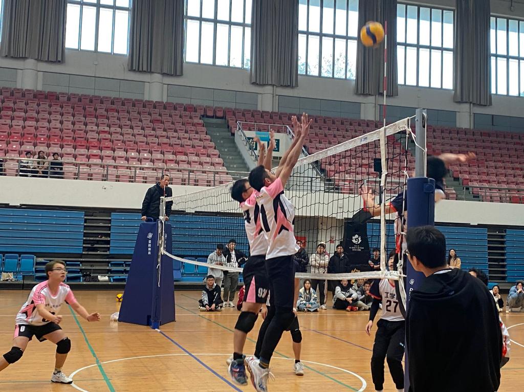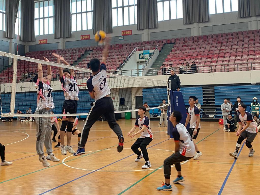 在短暂的休息交换场地之后,第二局比赛拉开序幕,对方调整进攻战略,攻势十分猛烈,在强大的心理压力下,我方队员发球失误,甚至出现了在网前连续下网的情况,对方趁势而上接连得分。“不要着急,稳扎稳打,注意力集中,打出我们自己的风采。”工学男排队长吴诚秋在场边鼓励着。随后比赛暂停,我方队员之间相互加油打气,商量战术,很快调整好状态,稳住比赛节奏,接连扣杀和拦网得分,最终以25:15的比分拿下第二局。