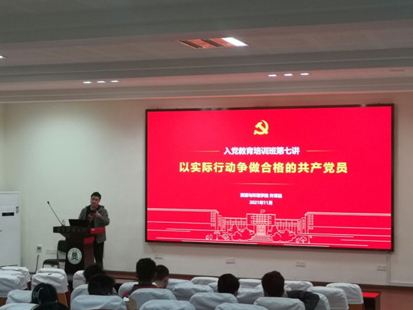 (通讯员 李志昌)11月19日晚,太阳成tyc9728集团分党校在工程楼A111报告厅举办2021年下半年发展对象培训辅导报告,由资源与环境学院许泽远老师为全体发展对象带来题为《以实际行动做合格的共产党员》的主题报告。