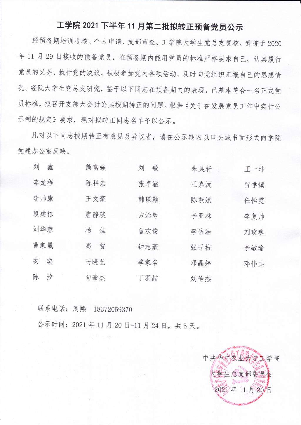 太阳成tyc9728集团2021下半年11月第二批拟转正预备党员公示