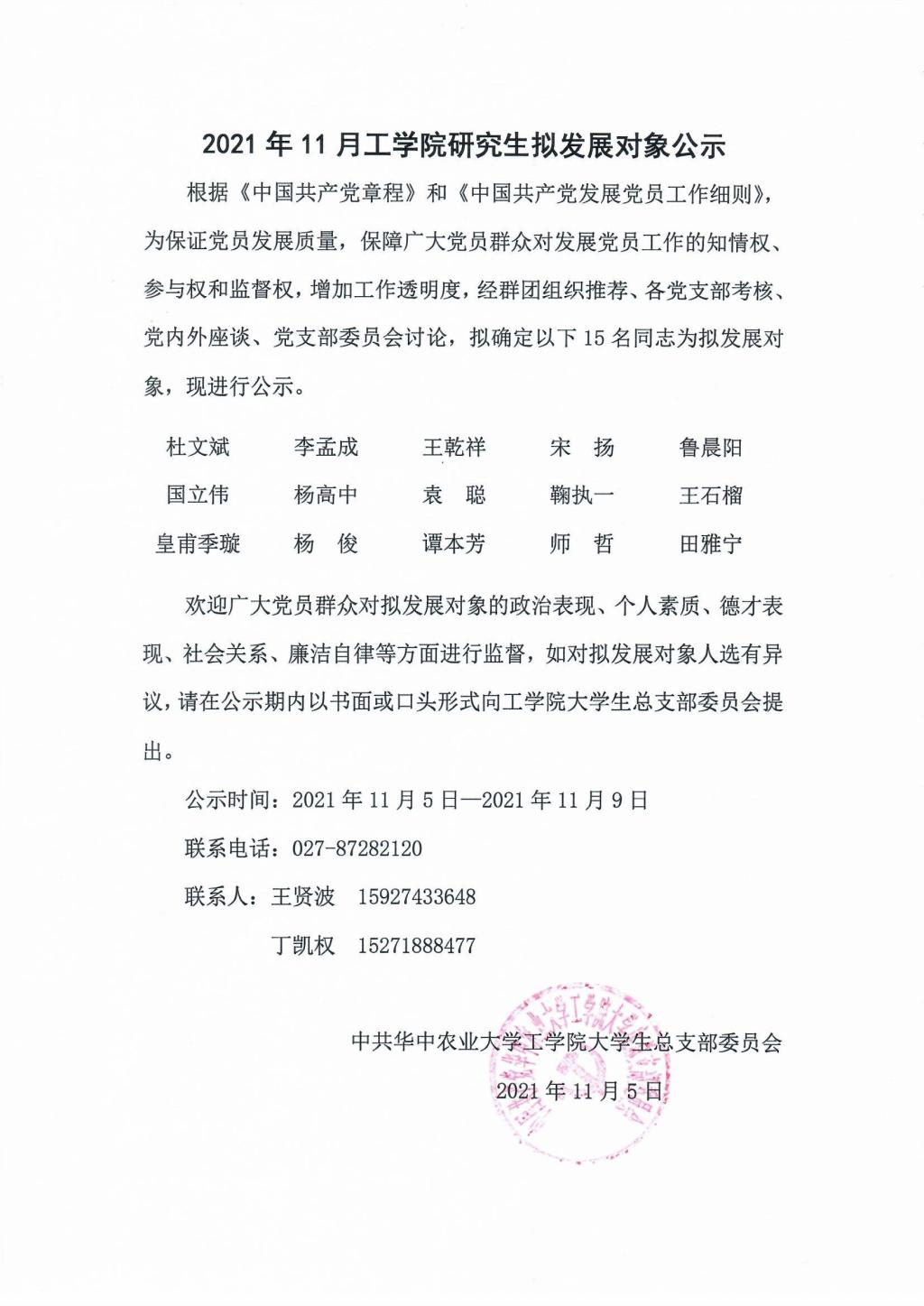 【研】2021年11月太阳成tyc9728集团研究生拟发展对象公示