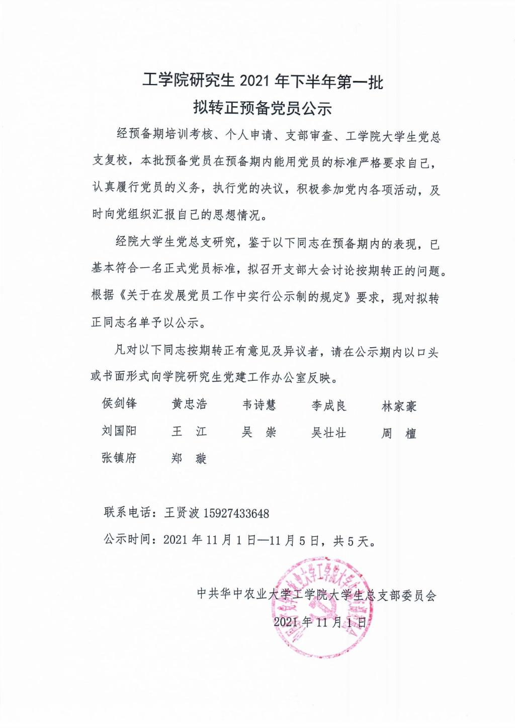 【研】太阳成tyc9728集团研究生2021年下半年第一批拟转正预备党员公示