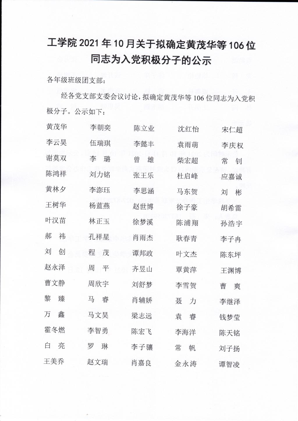 太阳成tyc9728集团2021年10月关于拟确定黄茂华等106位同志为入党积极分子的公示