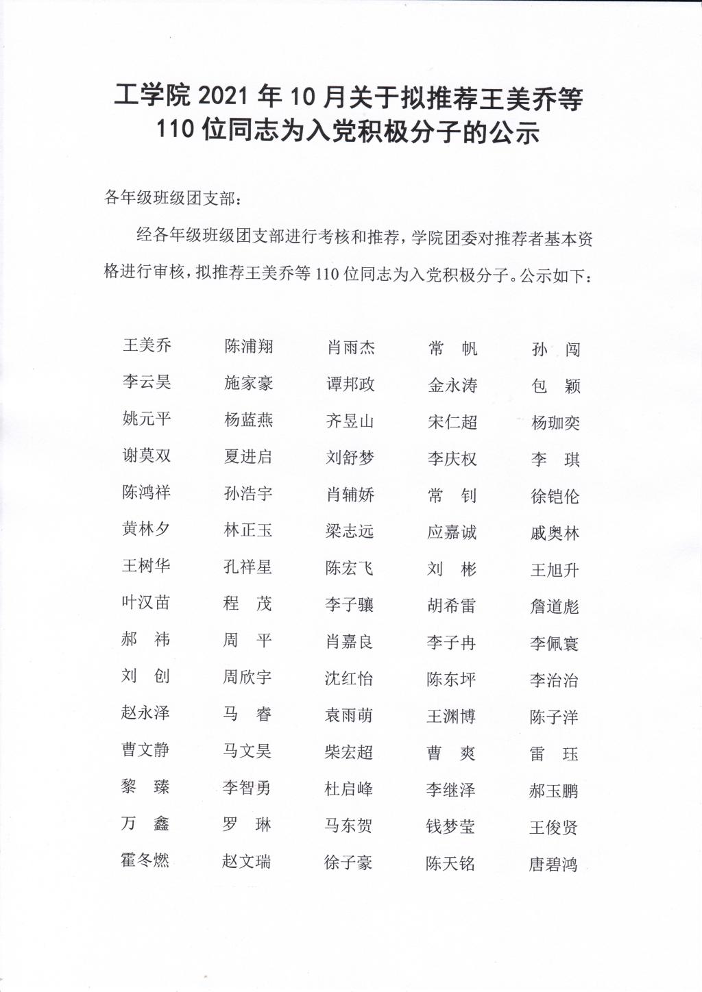 太阳成tyc9728集团2021年10月关于拟推荐王美乔等110位同志为入党积极分子的公示