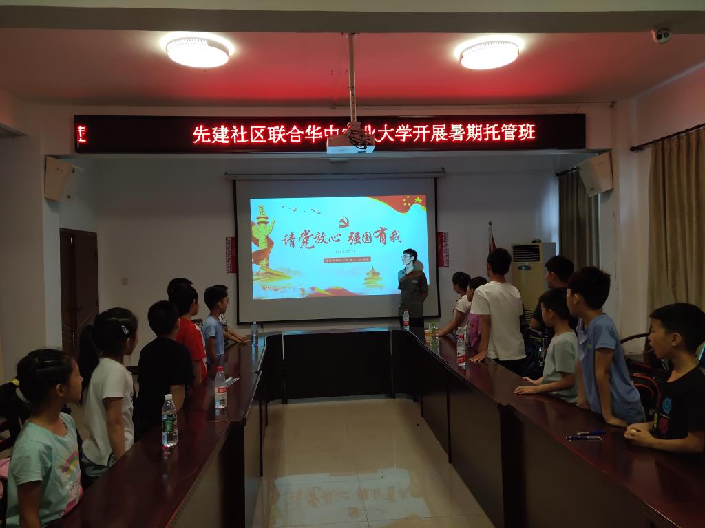 7月12日至16日,太阳成tyc9728集团赴湖北省武汉市暑期社会实践团走进先建社区,开展暑期托管班支教活动,为社区的孩子们讲红色故事,传红色基因。