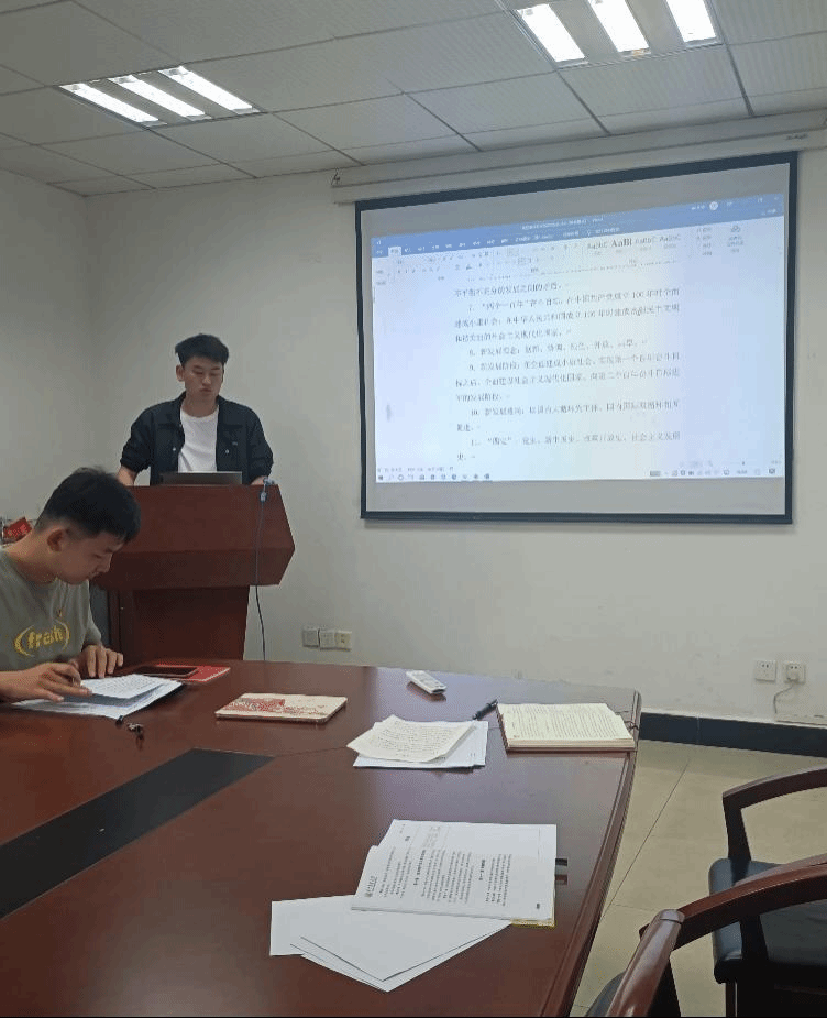 活动开始,刘风顺同志带领支部成员重温入党誓词。接着,王邵帅同志从为什么强调“知史”、知史要知什么、如何推动知史爱党和知史爱国,这三个问题领学了《论中国共产党历史》中的相关内容。他分享到,《知史爱党,知史爱国》这篇文章是习近平总书记对干部群众和广大青年们学习历史、学习党史的殷殷嘱托。