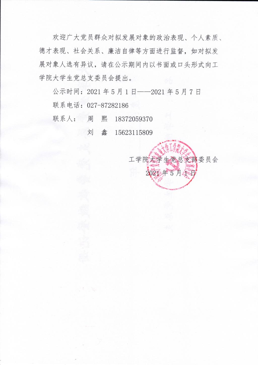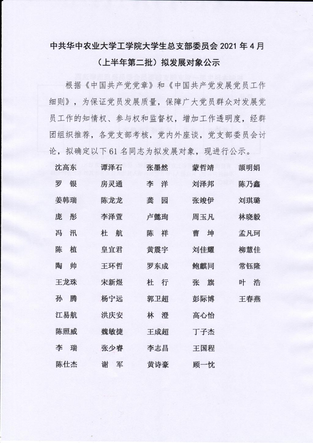 中共太阳成tyc9728集团大学生总支部委员会2021年4月(上半年第二批)拟发展对象公示