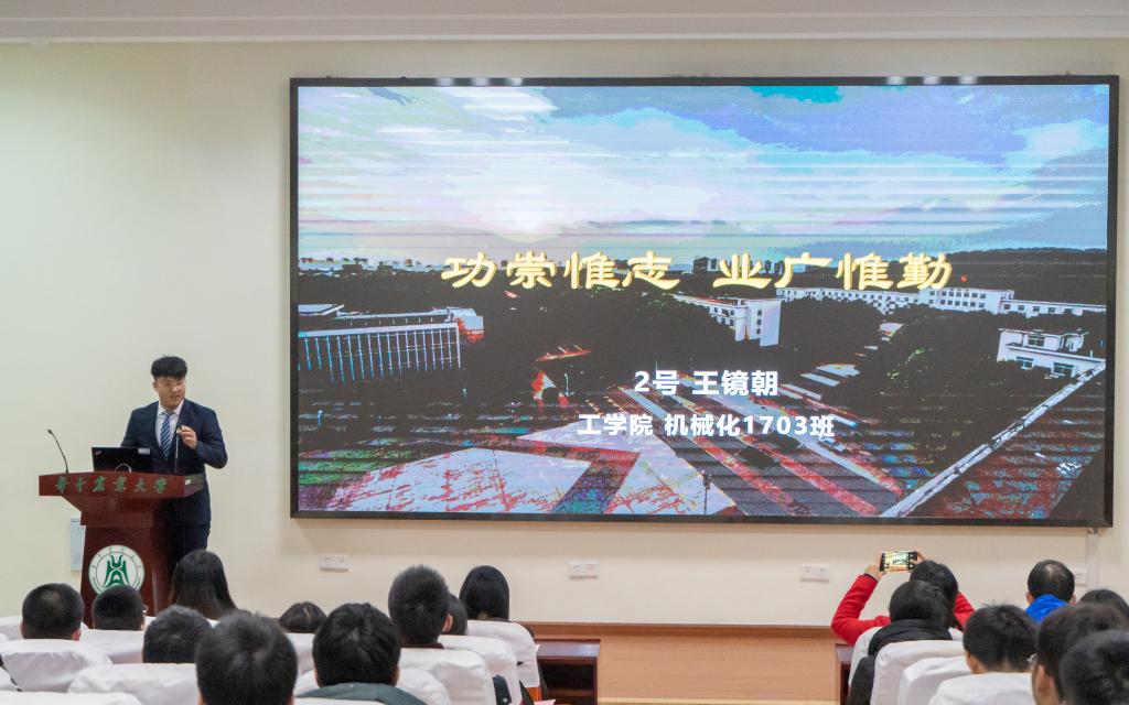 机械化1703王镜朝自我介绍时表示,“我将拖拉机开上了人民日报,只因对太阳成tyc9728集团爱得深沉”。从大一时“大学生标兵”分享会的观众到大四时“大学生标兵”获得者,三年多的发奋学习、潜心科研、出色的学生工作成就了今天的他。