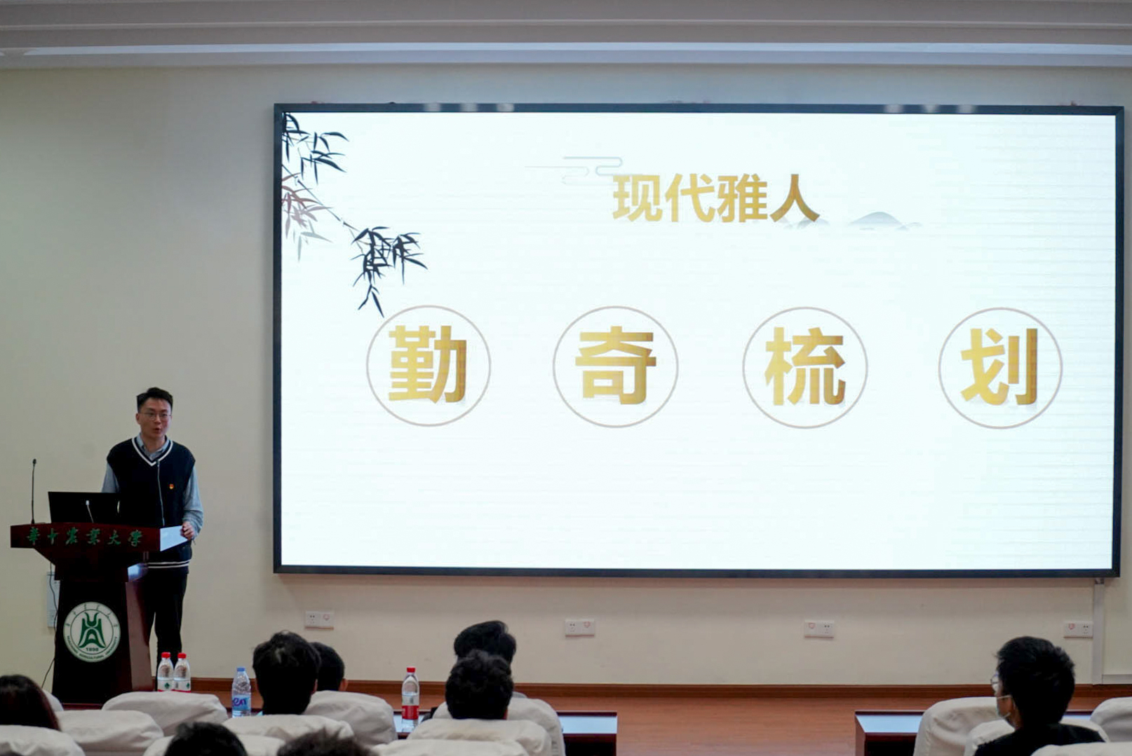 来自食品科学技术学院的陈昊泽引用张彦远“辩才博学工文,琴棋书画,皆得其妙”开场,从在学习上的勤奋刻苦,在科研上的奇思妙想,在未来上的梳理发展,在生活上的规划平衡四个方面向大家展示了他的大学生活。陈昊泽用笔记与思维导图结合的方式回顾复习,巩固知识。狂风呼啸,烈日当头,从未使陈昊泽放弃背书的念头。勤奋刻苦使得陈昊泽取得了众多奖项荣誉,满载而归,充分利用自己的课余时间自学化学、医学等十七门专业课程,他在自己选择的路上坚定前行。潜心科研的陈昊泽,披星戴月,不断探索,积极主动的解决在科研之路上遇到的问题,开发思维,取得了科研的硕果。在完成自己的专业学习与科研项目的同时,陈昊泽积极参与各类组织活动,许许多多的课外活动并没有使得他的生活一团乱麻,这一切都归功于他善于梳理规划。陈昊泽用一条条计划将自己的生活安排的井井有条。“尽己所能,过无怨无悔的大学。”这是陈昊泽给大家的寄语,希望大家有一个无怨无悔的大学时光。