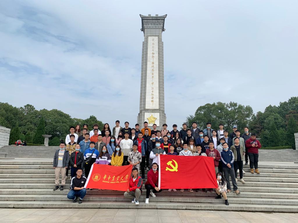 “工农民主政府建立起,胜利歌声响连天。红旗插遍满山岗,土地革命把身翻。”在黄麻起义和鄂豫皖苏区革命烈士纪念碑前,辅导员王贤波对所有同学说到:“革命先烈们为了民族独立和国家富强献出了他们的宝贵生命,作为新时代青年研究生,我们一定要学习历史、铭记历史,不忘入党初心,为中华民族伟大复兴的中国梦贡献青春力量。”随后,所有人在研究生党建办公室工作人员康启新的带领下重温、学习了入党誓词。