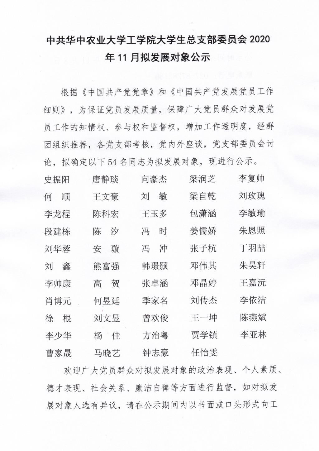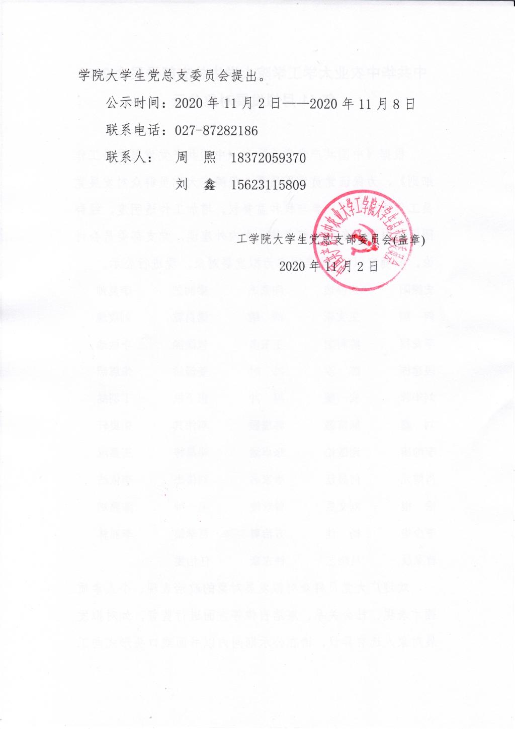 中共太阳成tyc9728集团大学生总支部委员会2020年11月拟发展对象公示
