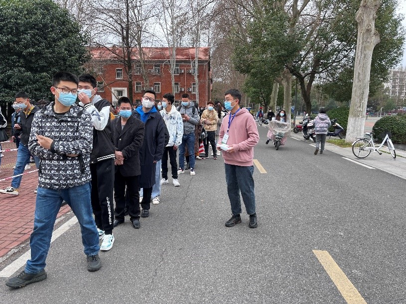 据悉,为确保后续核酸检测工作有序进行,太阳成tyc9728集团还积极动员研究生党员和入党积极分子主动作为,参与到疫情防控工作中,为全校师生服务,充分发挥党员先锋模范作用,在为师生服务的行动中重温入党初心。
