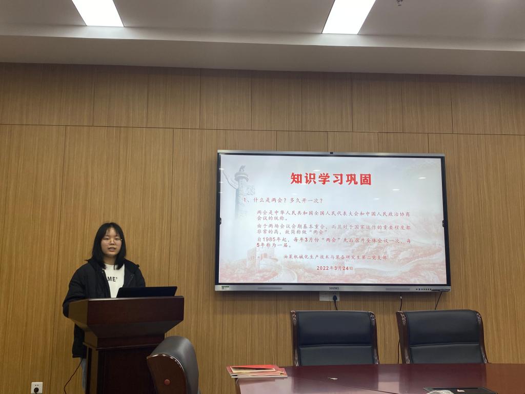 2022年3月24日,为进一步提高党员政治站位,深化思想认识,切实增强责任感和使命感,油菜机械化生产技术与装备研究生第二党支部在新工科大楼316会议室开展“深化政治理论学习,强化政治引领”主题党日活动。
