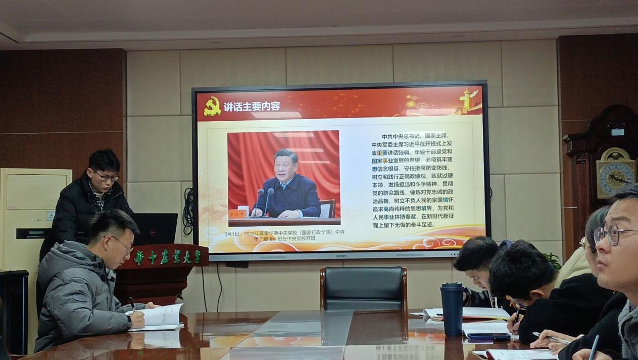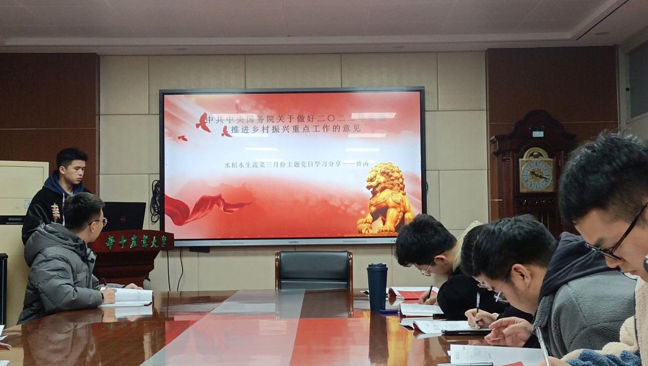 2022年3月22日,水稻水生蔬菜机械化生产技术与装备研究生党支部在工程楼A201开展3月份“深化政治理论学习,强化政治引领”主题党日活动。
