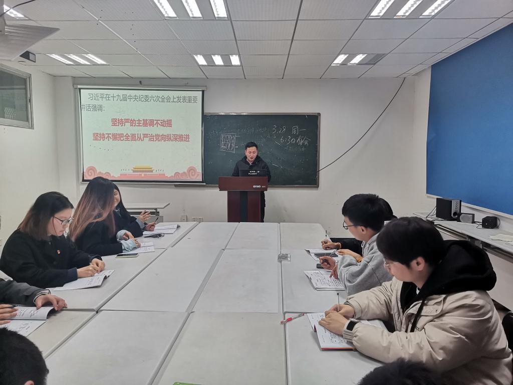 刘瑜明同志领学赵乐际在中国共产党第十九届中央纪律检查委员会第六次全体会议上的工作报告,他表示,报告指出我们党纪检监察工作发展方向和目标是要运用党的百年奋斗历史经验,推动纪检监察工作高质量发展。在会议接近尾声时,刘瑜明同志还向支部成员强调今年是政治大年,号召党员关心国家大事,了解实事动态,提升自身本领,投入新时代的建设中。