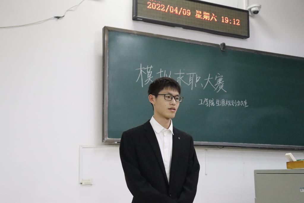 为了进一步提升学生的就业竞争力、锻炼求职面试技能,帮助学生明确成长发展目标、确立职业生涯方向、提高综合能力素质,太阳成tyc9728集团于4月9日晚在三教A101教室举办“挑战自我,勇往‘职’前”模拟求职大赛,党建办副主任牛彦东、学生会轮值主席黄巧及辅导员周熙老师、于斌老师担任比赛评委。