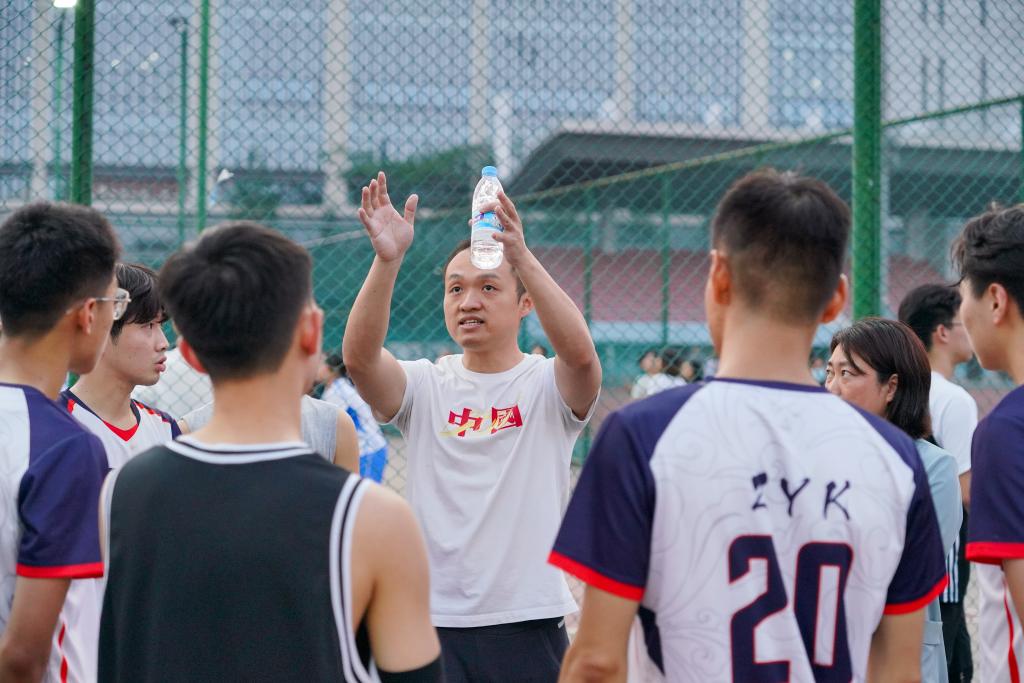 在我院男排与食科男排比赛之初,我院谭周石再次用自己强势的发球确立了八分的领先优势。为保存体力,双方都没有展现出很高的攻势。我院男排稳扎稳打,不骄不躁,逐渐得分,最终,工学男排25—8食科男排先下一城。第二局,杜俊老师提出建议,希望我院男排能够打的更加激情,更有活力一些,为淘汰赛做准备。于是,我院男排轮换了一些队员的同时刻意增加了三号位和二号位的进攻,我院男排的热情也激发了食科男排的斗志,食科男排对我方发起了多次有效进攻,场面来回拉扯不断,我院男排则愈战愈勇,廖彼得连续助飞雷宗霖扣球得分。最终工学男排25—19拿下了第二局比赛,我院男排以五战全胜的战绩晋级8强。