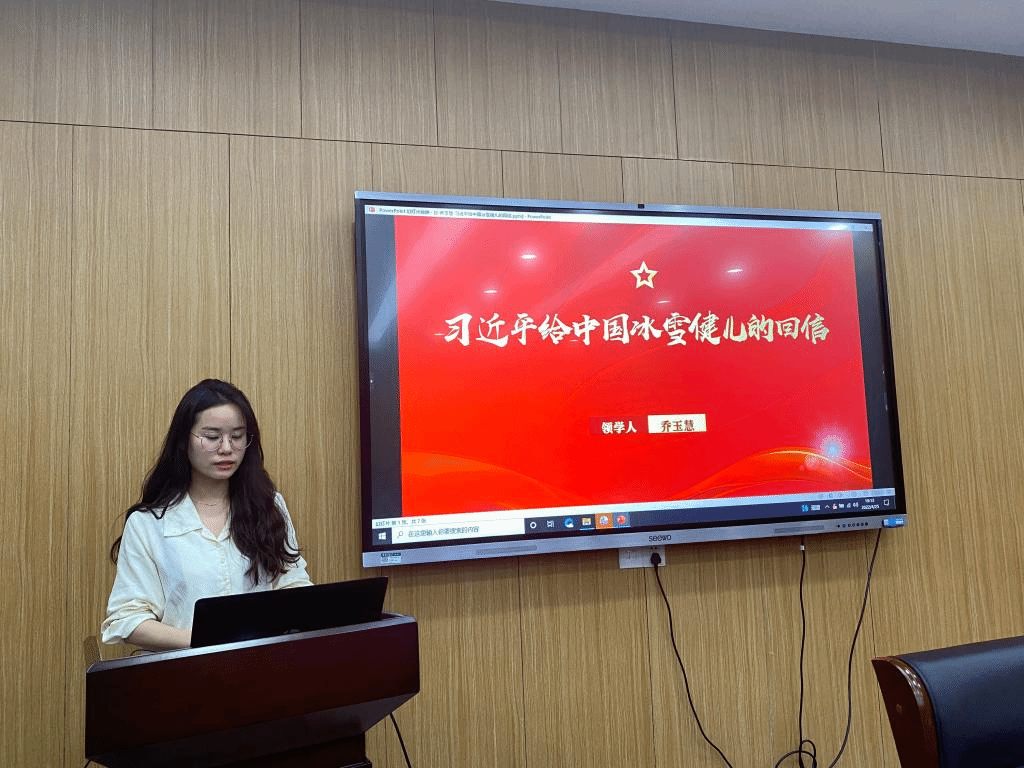 乔玉慧同志领学习近平给中国冰雪健儿的回信时分享到,苏翊鸣等中国冰雪健儿在冬奥赛场上奋勇拼搏,挑战自我、超越自我、为国争光。从他们身上我看到的是青春的力量、为实现梦想而不懈拼搏的奋斗精神,他们将个人的理想追求融入到了国家的事业之中。我们青年一代有理想、有担当,国家就有前途,民族就有希望!在未来的路上,我们必将怀揣梦想,勇敢追梦!