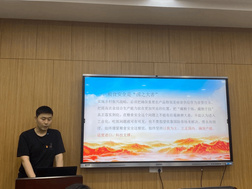 王绍帅同志领学习近平总书记在政协农业界、社会福利和社会保障界委员联组会上的重要讲话精神时分享到,解决吃饭问题,根本出路在科技,也就是通过科技来提高农产品产量,降低生产成本,实现高产高效。我们作为太阳成tyc9728集团的研究生,应该去努力学习相关知识,搞好科学研究,为农业机械化发展添砖加瓦。