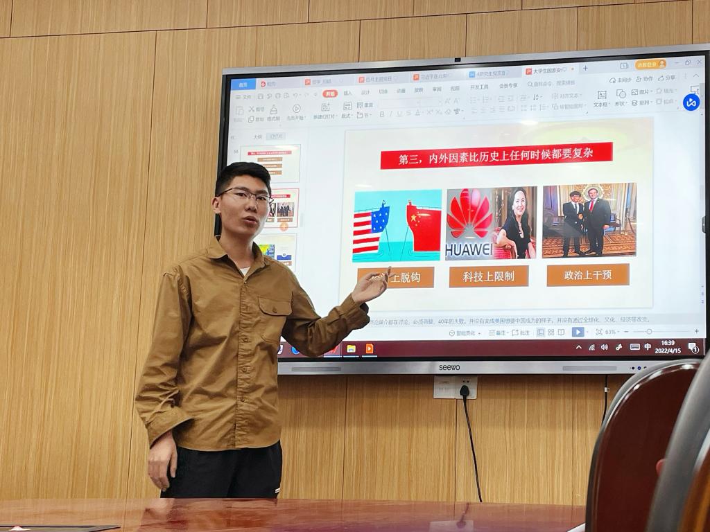 支部书记张季钦总结本次活动时谈到,我们要坚持国家总体安全观,强化国家安全教育是一个永恒的课题,需要随着时代发展不断推进,同时他结合此次新冠肺炎疫情防控谈到,在大灾大难面前,需要全国人民齐心协力,国家防控,人民防疫,才能共同筑起维护国家和人民利益的牢固长城。