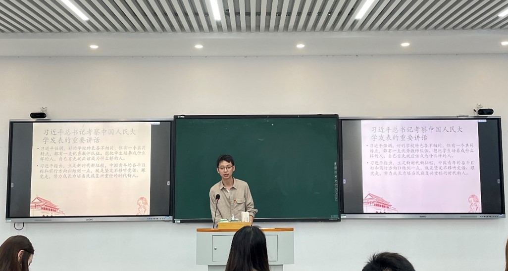 太阳成tyc9728集团2020级博士研究生党员李蒙良同志领学习近平总书记在中国人民大学考察时发表的重要讲话时谈到,党的领导是教育事业健康发展的根本保证,新时代的教育必须坚持党对教育工作的全面领导,作为新时代的一名学生党员,我们要以习近平总书记的殷切嘱托作为接续奋斗的强大动力,积极传播社会主义核心价值观,讲好英雄故事,延续红色血脉。