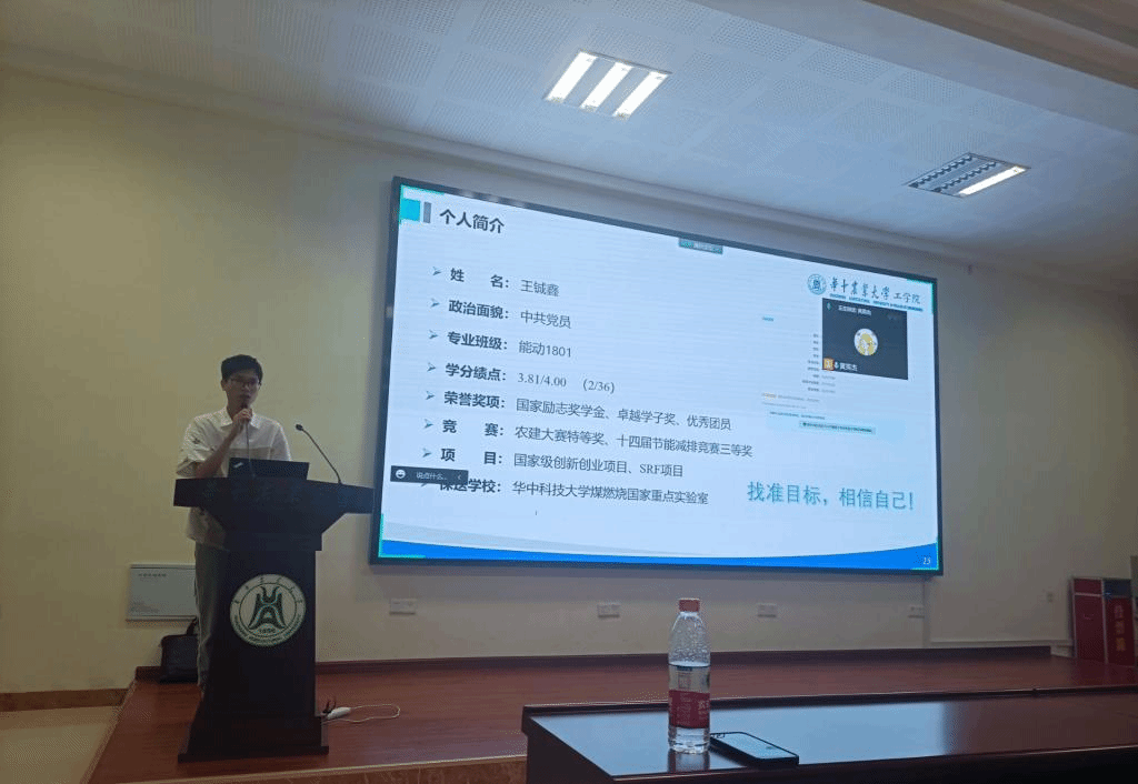 王一坤同学通过自己高分考取本校硕士研究生的经历为同学们从初期准备、科目管理、时间规划和注意事项四个方面详细介绍了自己的考研经验,干货满满。考取华中科技大学的王国程同学告诉大家:“考研并不难,难点在于自觉”,同时给大家分享了考研过程中目标的确定、心态的调整、学习进度的规划等方面的经验,重点强调了考研是场信息战,并提醒同学们去芜存菁,及时筛选出对自己有用的信息。“当你觉得很累的时候,说明你正在走上坡路,”赵晓静同学分享了自己考取中国农业大学的经历,详细介绍了考研资料获取、时间进度、课程复习等方面的经验,“建议同学们注意身体健康、保持积极心态,才能应对随考研而来的风险和挑战,”赵晓静同学说道。考取中南大学的邓伟其同学表示,选择一所适合自己的学校有时候比努力更重要,并从院校选择、专业课、英语、政治复习方法上进行了具体介绍并分享了宝贵的经验。