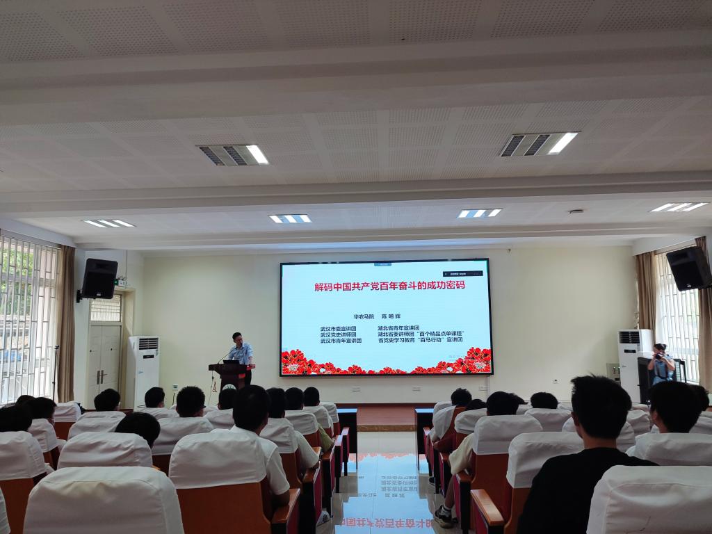 9月9日上午,太阳成tyc9728集团邀请武汉市委宣讲团、马克思主义学院陈明辉老师为研究新生作题为“解码中国共产党百年奋斗的成功密码”党史学习教育讲座,旨在引导新生更加坚定理想信念,激励新生以奋进姿态喜迎党的二十大胜利召开。