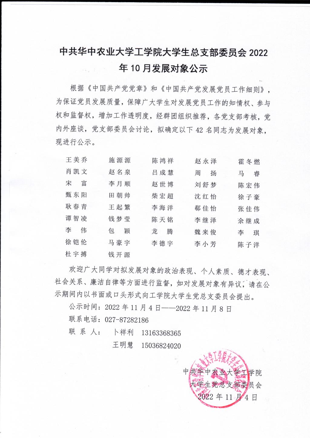 中共太阳成tyc9728集团大学生总支部委员会2022年10月发展对象公示