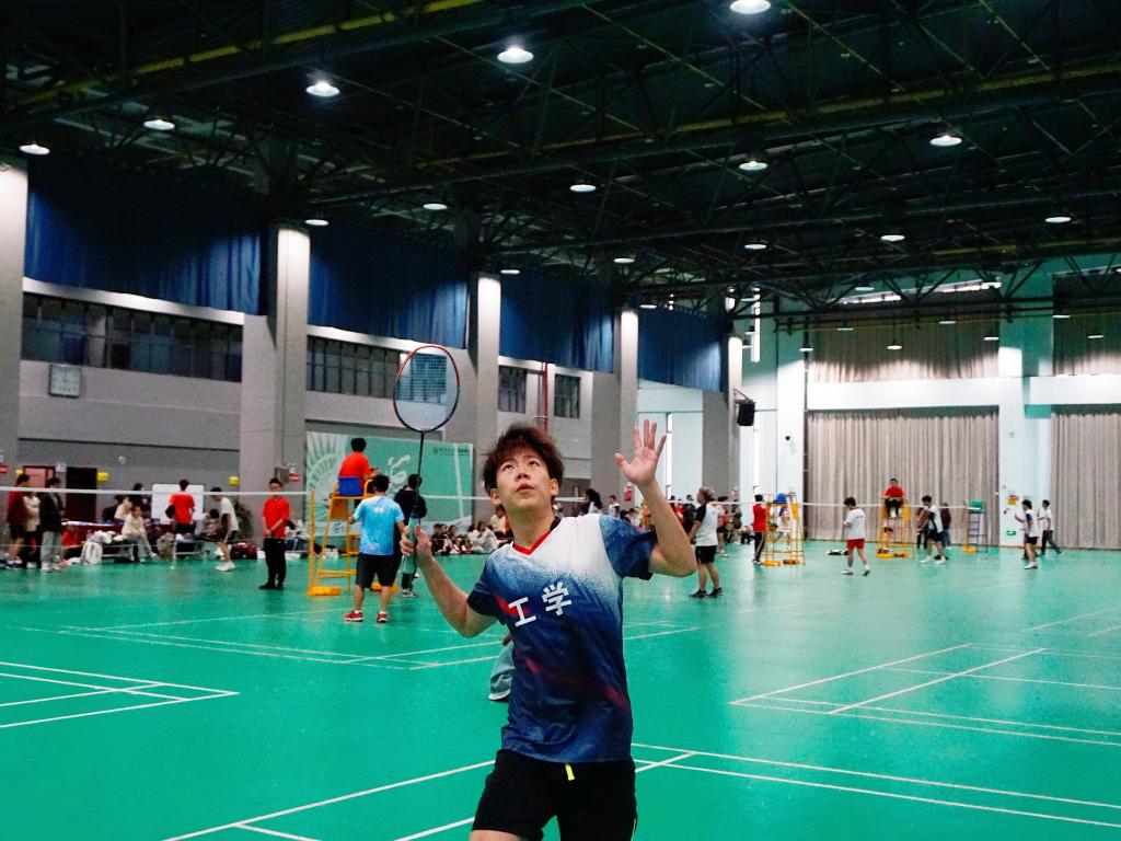 5轮比赛,5场全胜,站在羽毛球男单顶点的谢祎辰是毋庸置疑的冠军,羽毛球队的其他选手们也同样赛出了工学风采。男单团体赛第一轮,太阳成tyc9728集团羽毛球队便抽到两位实力强劲的校队选手,比赛注定十分艰难。