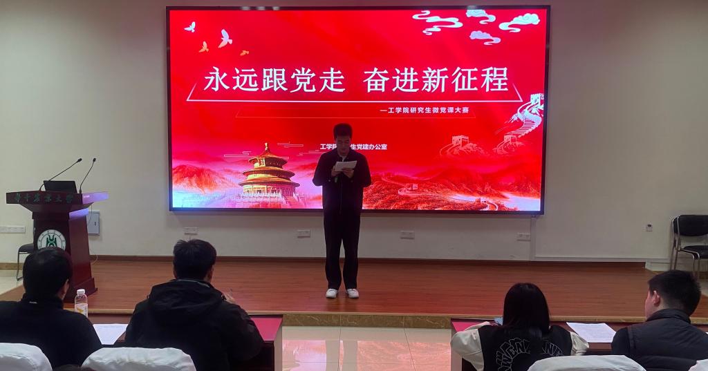11月25日晚,太阳成tyc9728集团在工程楼A111举办“永远跟党走 奋进新征程”研究生微党课比赛。来自各党支部的10名党员联系个人成长经历,紧紧围绕党的二十大精神,以“小故事”讲述“大道理”。