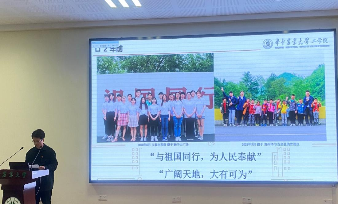 “黄麻起义和鄂豫皖苏区革命烈士纪念园离我家不足两百米,对来我说,它有着特殊的意义。”油菜机械化生产技术与装备研究生第二党支部的胡世灵讲述了家乡红安县的十年变化。从“脱贫攻坚”到“乡村振兴”,党团结带领人民披荆斩棘、栉风沐雨,发扬钉钉子精神,敢于啃硬骨头,取得了脱贫攻坚的伟大胜利。2021年7月,胡世灵前往贵州进行为期一年的支教,在支教过程中,他和队友们牢记习近平总书记给本禹志愿服务队回信中“与祖国同行,为人民奉献”的殷殷嘱托,通过自己的教育引导,给山区的孩子们带去更多的可能性。