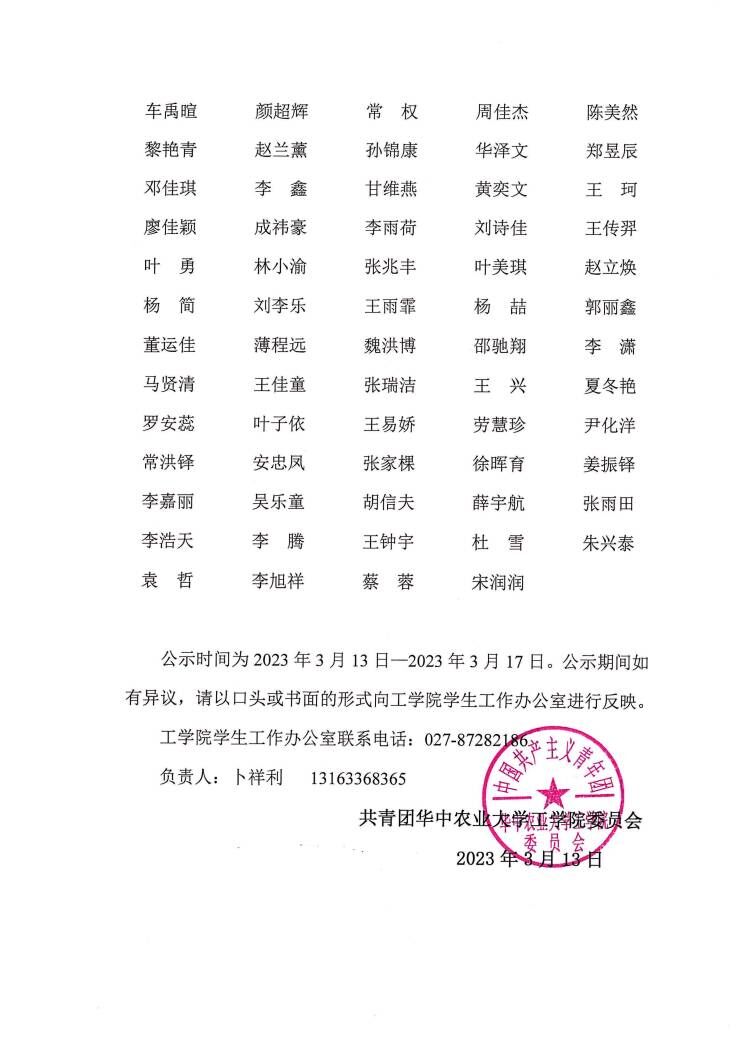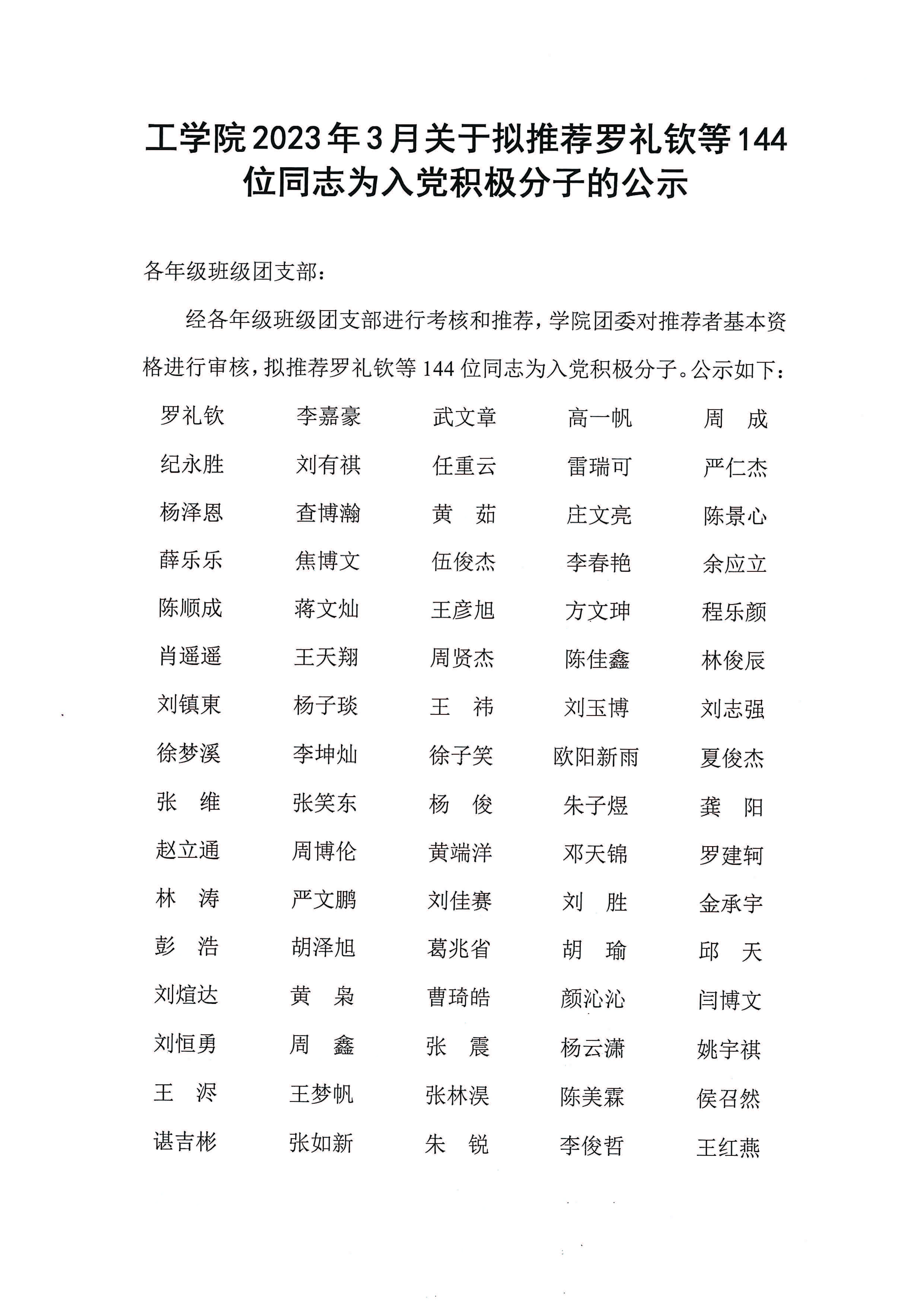 太阳成tyc9728集团2023年3月关于拟推荐罗礼钦等144名同志为入党积极分子的公示