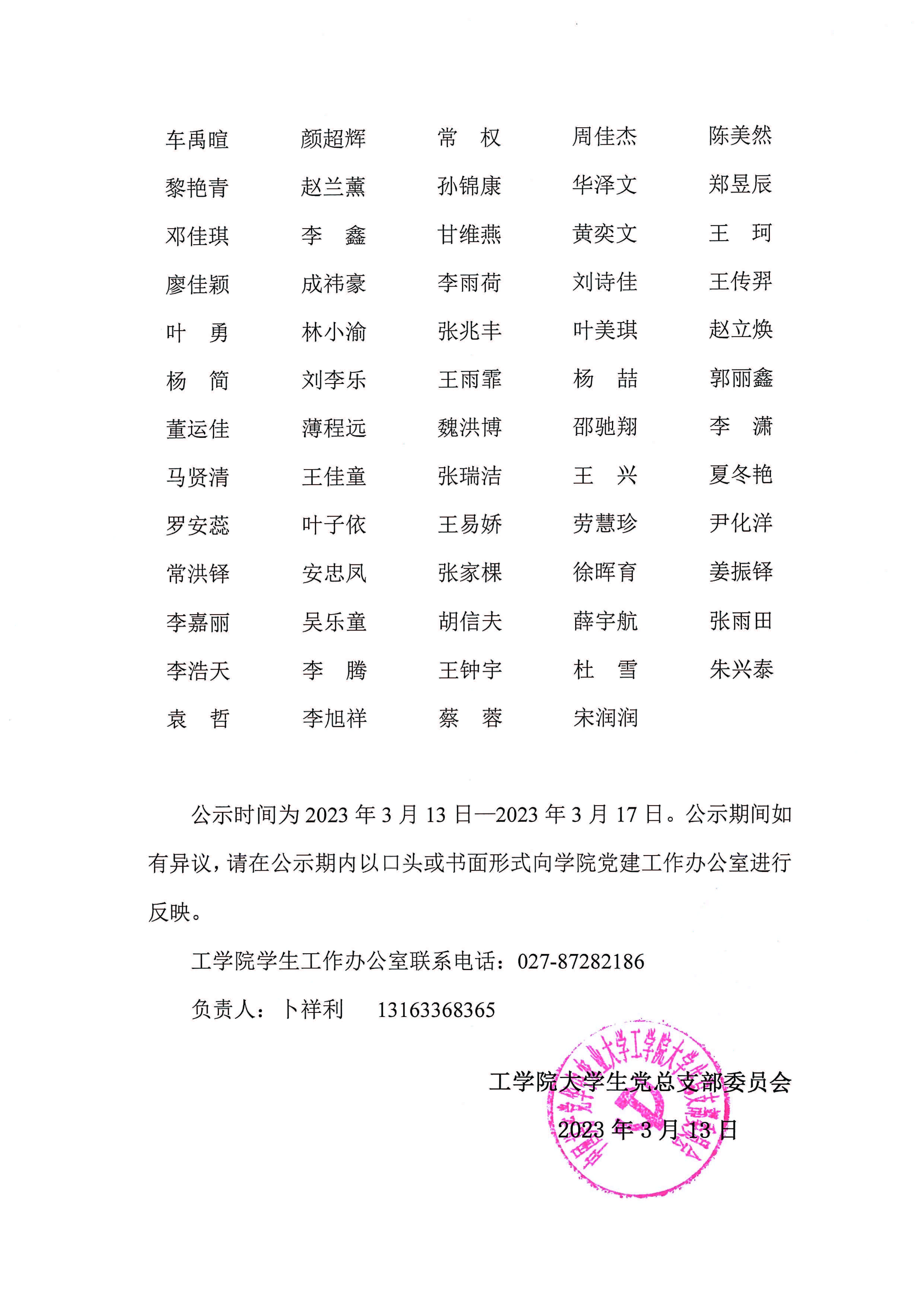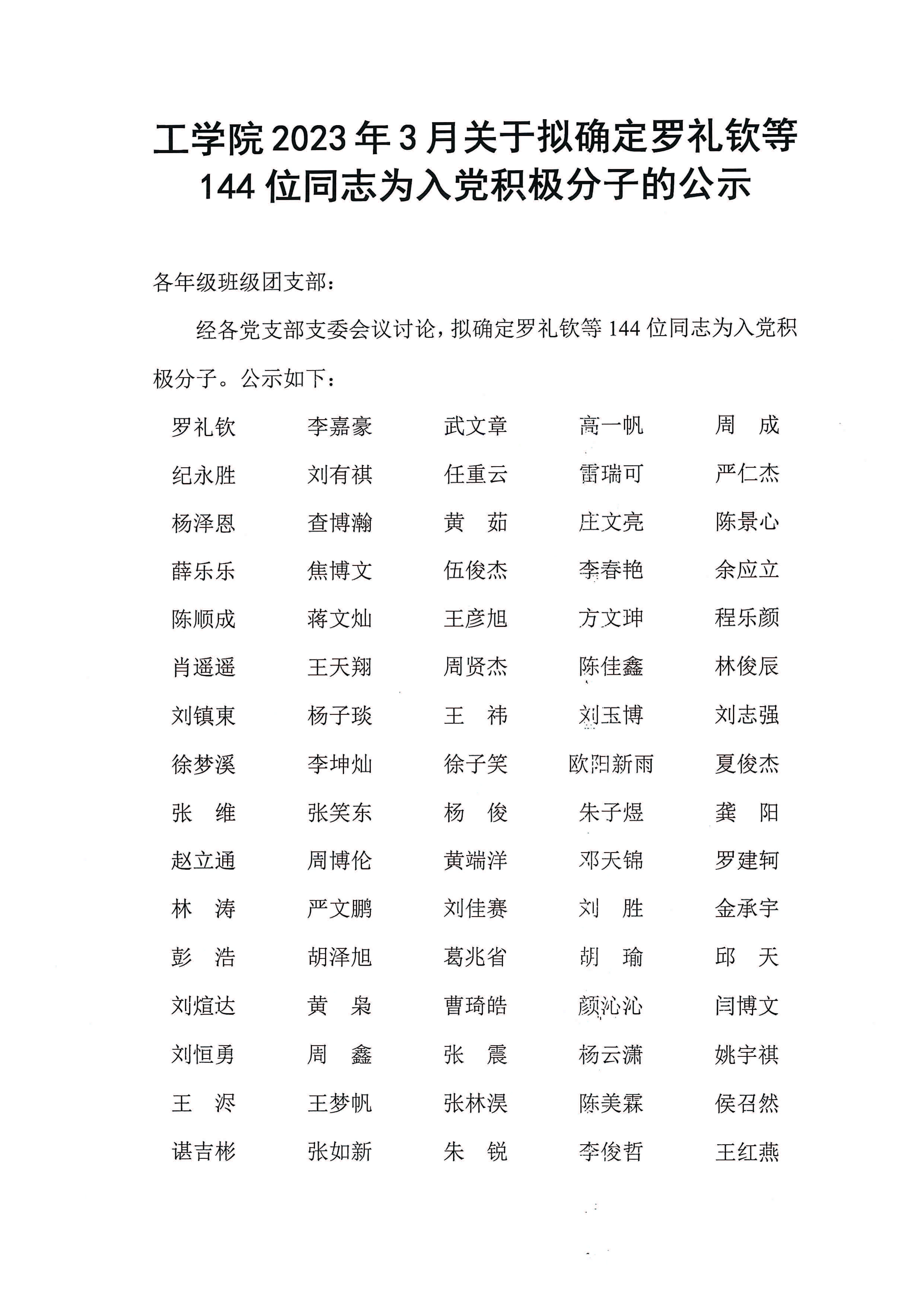 太阳成tyc9728集团2023年3月关于拟推荐罗礼钦等144名同志为入党积极分子的公示
