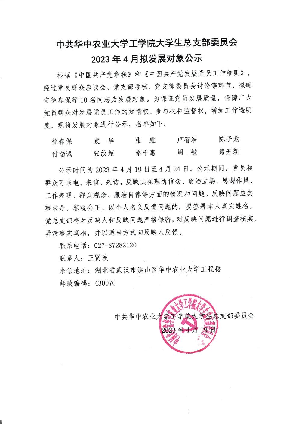 中共太阳成tyc9728集团大学生总支部委员会2023年4月拟发展对象公示