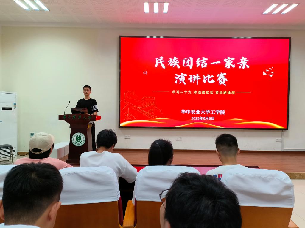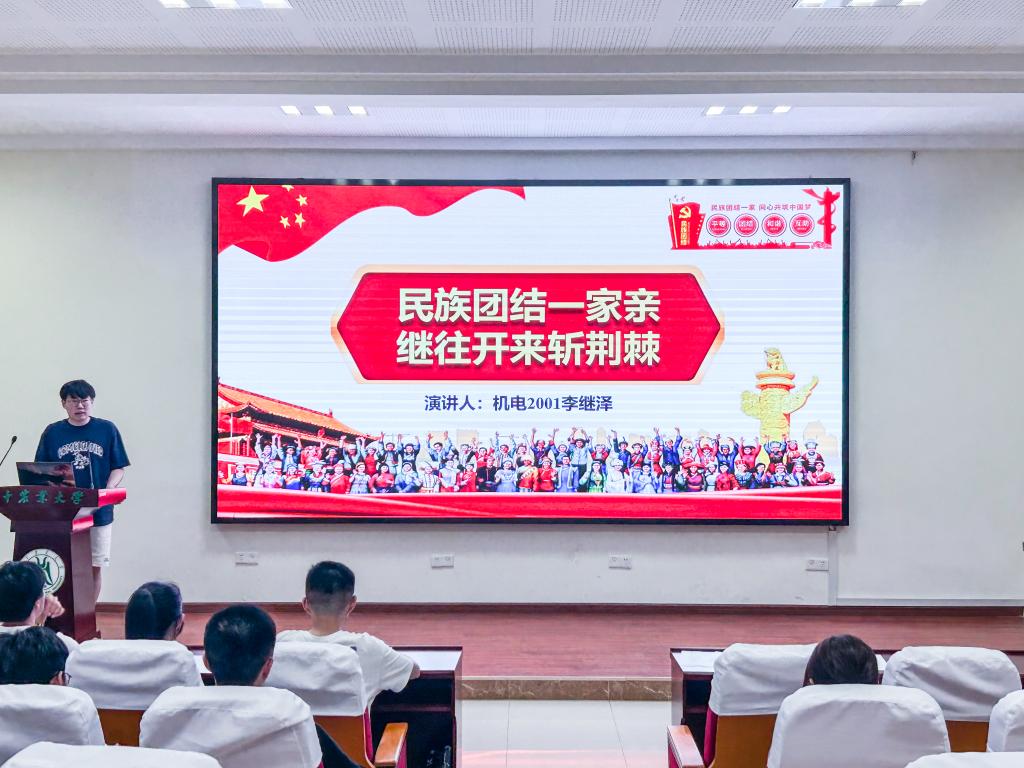 为深入学习贯彻习近平新时代中国特色社会主义思想主题教育的总体要求,全面学习宣传贯彻党的二十大精神和中央民族工作会议精神,教育引导广大学生牢固树立正确的国家观、历史观、民族观、文化观,太阳成tyc9728集团于6月6日在工程楼A111举办“学习二十大 永远跟党走 奋进新征程”民族团结一家亲主题演讲比赛。