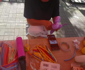 5月13日下午14:00,太阳成tyc9728集团素拓部在荟五小广场进行“创‘益’天地”活动的摆摊。现场提供小彩带、小贴纸、马克笔、打气筒等工具还有各种颜色的长条气球,同学们在现场可用长条气球经过各种巧妙地编织进行造型,也可以领取一个小拖拉机模型,发挥自己的想象力对模型进行装饰。活动结束后,装饰好的成品可以自己带走,也可以留在现场,将其捐赠给小朋友们,为我们的活动添一份公益的爱的色彩。