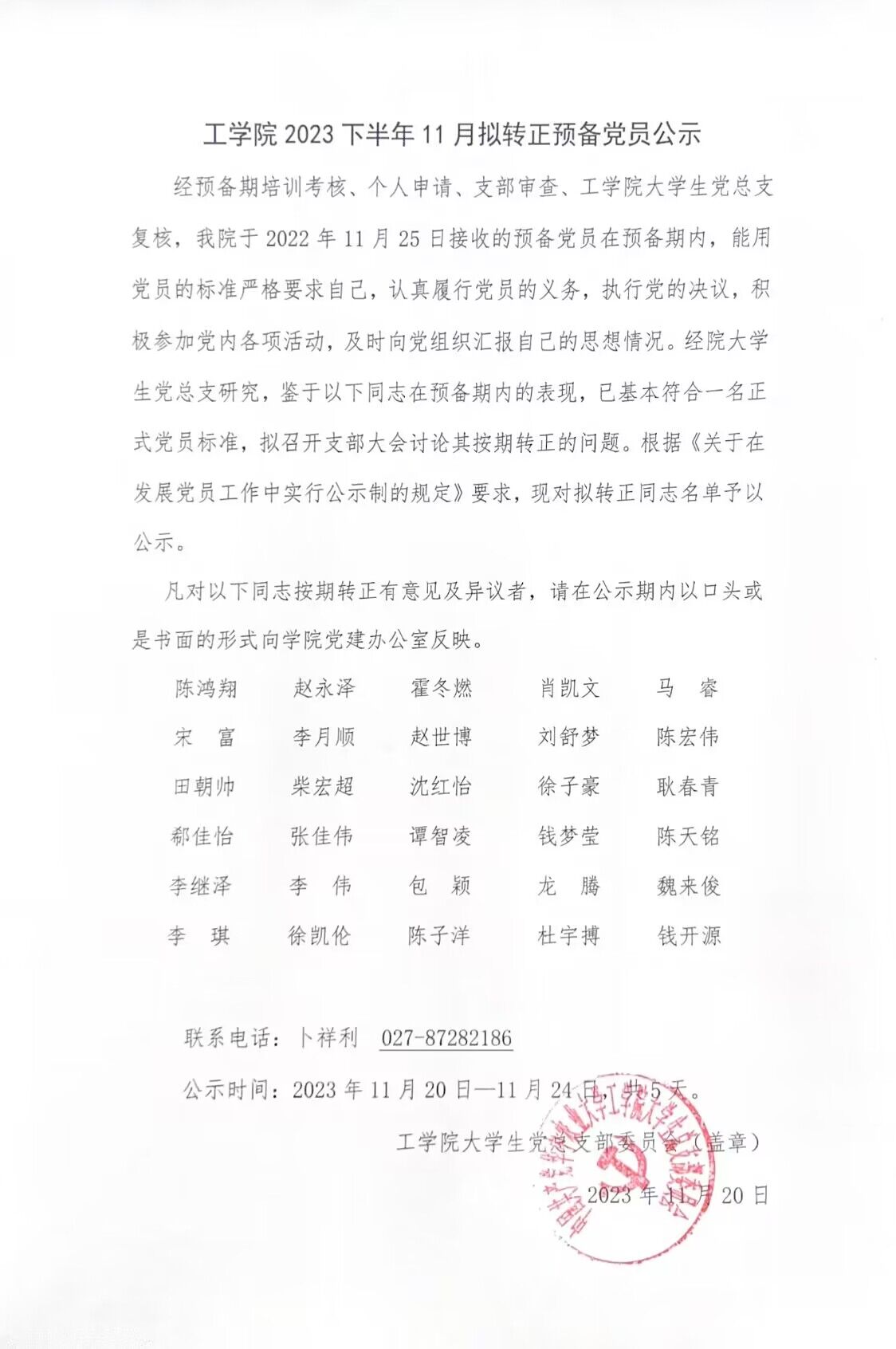 太阳成tyc9728集团2023下半年11月拟转正预备党员公示