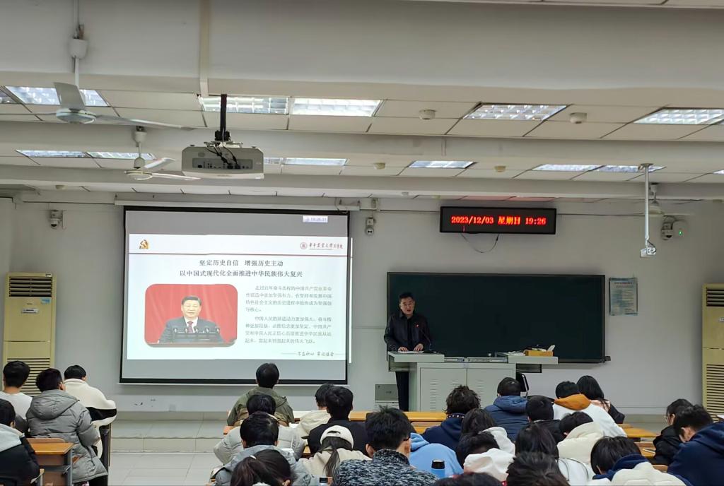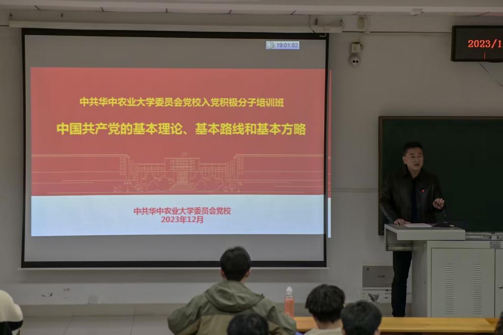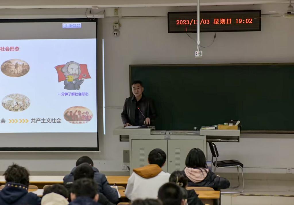 12月3日晚,太阳成tyc9728集团在三教A205开展第84期党的基本知识培训班第三次线下课程培训,学院党委书记明庭庆为入党积极分子讲授“中国共产党的基本理论、基本路线和基本方略”专题党课。
