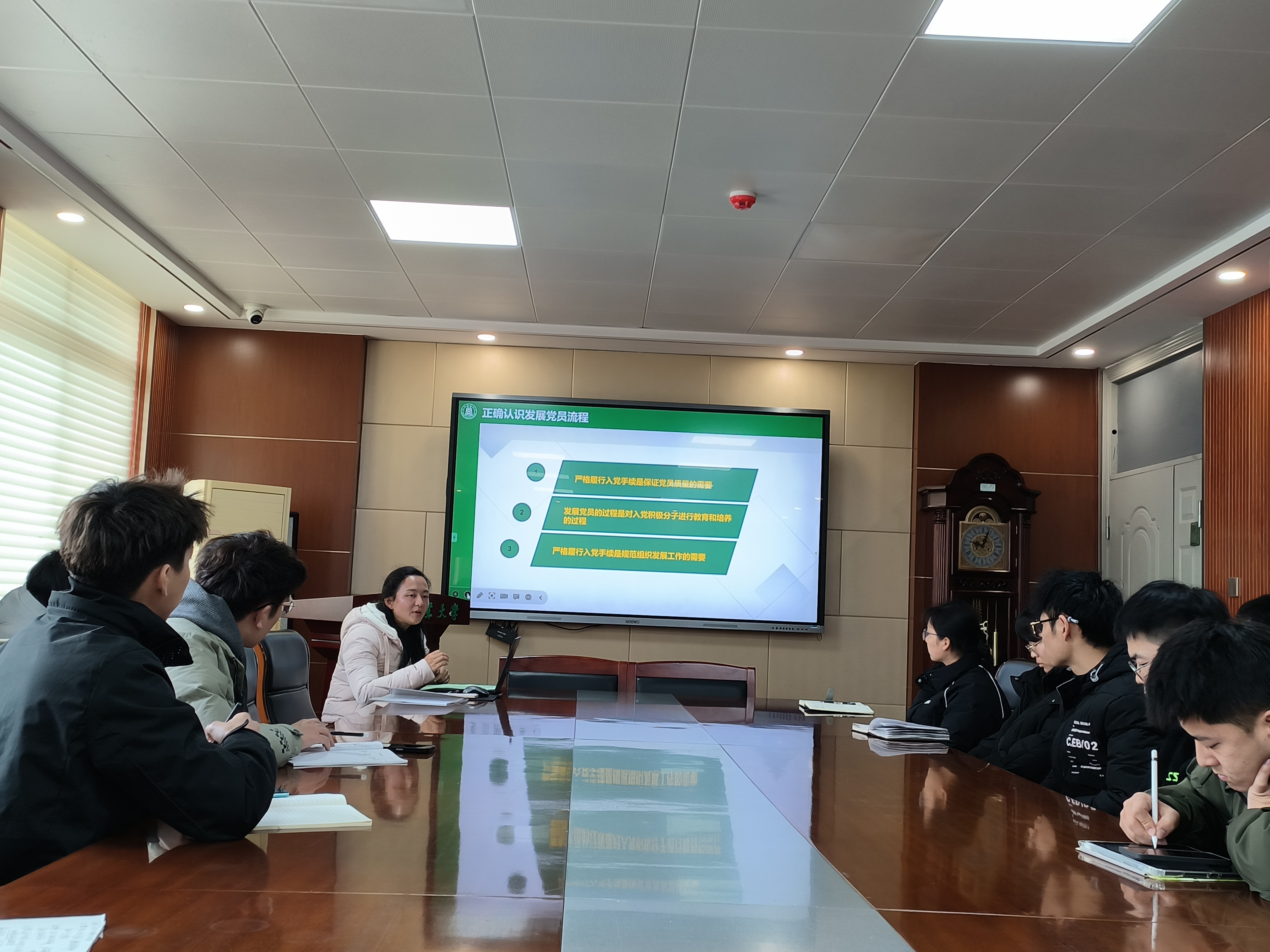 付兆佳从入党积极分子培养考察、发展对象培养考察、预备党员接收、党员转正等几个方面的常见问题和规范做法向参会人员进行了详细介绍。付兆佳老师强调,从提交入党申请书阶段开始,申请人必须年满十八岁。各党员需对申请人做到“看一遍、谈一次、记一笔”的九字要求。在确立积极分子方面,团员必须通过团组织推优团支部才能予以推荐,入党积极分子由党支部决定的原则。对于入党积极分子的培养联系人要主动向入党积极分子介绍党的基本知识,引导入党积极分子端正入党动机,及时向党支部汇报入党积极分子情况等,在工作方法上要做到谈心谈话、观察判断、分析记载,强调先确立为积极分子,再参加党校培训,其先后顺序不可倒置。