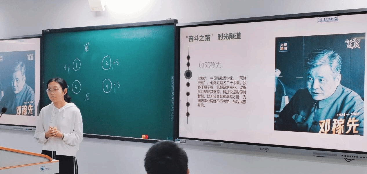 “奋斗之路” 时光隧道展示环节,团支书播放了按时间顺序设计的PPT。团员们依次走过 “时光隧道”,认真观看每一张照片,仿佛置身于历史的长河之中,感受着先辈们奋斗的足迹。大家深刻认识到,当代青年肩负着历史赋予的重任,应传承和发扬奋斗精神,在新时代的新征程中砥砺前行。