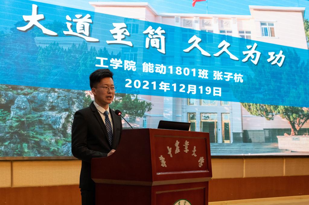 2021年太阳集团网tyc9728十大标兵获得者能动1801班张子杭同学从学习、科研和学生工作三方面分享他在华农三年的成长经历和感悟。在学习上,课堂专注、课后巩固、及时整理、勤于总结的好习惯让他获得了43门课程满绩点,并多次获得国家奖学金和学习成绩优秀奖;在科研上,他从科研小白一步步探索,虽然科研之路漫长且艰难,但他不畏困难,奋勇向前,以第一作者发表发表SCI论文1篇,申请国家发明专利7项(其中4项已授权),8次参加课外科创竞赛并获奖,正是他努力的成果。同时张子杭躬行实践,乐于奉献,积极参加志愿服务和学生工作,在实践中磨炼自己,在奉献中提升自己。他用始终如一的行动,诠释着笃志好学的态度,用热情与汗水,书写他的华农时光。