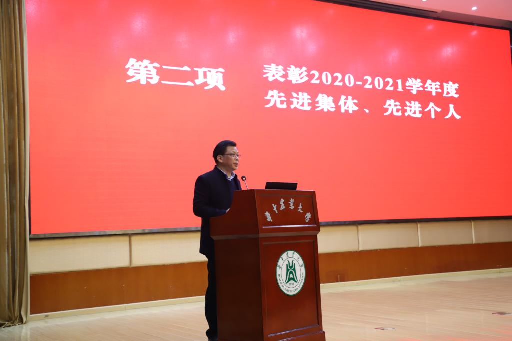(通讯员 卜祥利 张梦迪 图 周鸣睿 )12月19日上午,太阳成tyc9728集团2021年学生表彰奖励大会暨优秀学子成长分享会于国际学术交流中心报告厅成功举行,太阳成tyc9728集团党政领导班子及来自武汉华扬动物保健集团等42个企业的56名企业家出席会议,会议由太阳成tyc9728集团党委副书记瞿明丽主持。